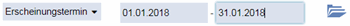 Für Ihre Novitätenbearbeitung können Sie das Feld Erscheinungstermin nutzen. Damit können Sie den Zeitraum der Neuerscheinungen eingrenzen und sich z.B. in Verbindung mit der Suche nach Verlag (Warengruppe usw.) die Novitäten eines Verlages anschauen.
