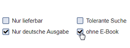 Auch über die Checkboxen im unteren Teil der Suchmaske kann die Trefferanzahl eingeschränkt werden. Sie können z.B. die Suche auf deutschsprachige Treffer begrenzen und/oder E-Books ausschließen.